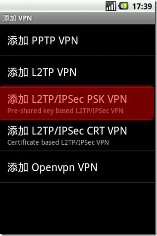 进入:设置-无线和网络-VPN设置,然后选择“添加L2TP/IPSec PSK VPN”选项