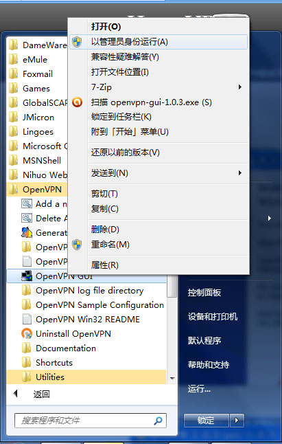 如果您是win7用户,请务必以管理员身份运行openvpn